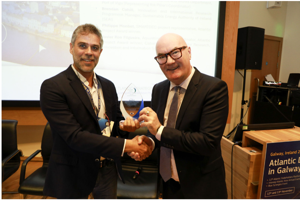 In the Atlantic Ports category, the SMARTDEC project, led by Philippe Monbet of Pôle Mer Bretagne Atlantique, received the award for driving the transformation of ports into advanced energy hubs. Its approach connects research, industry and public policy to accelerate the decarbonisation of maritime transport and support the green transition.